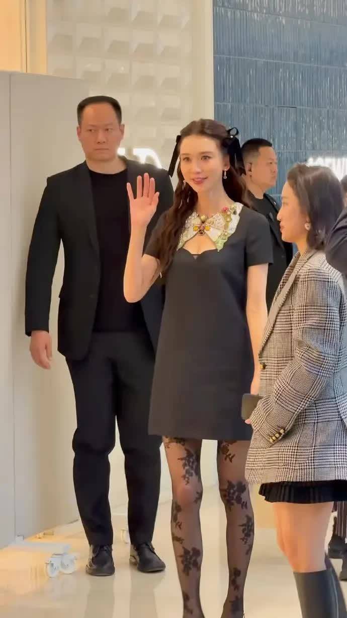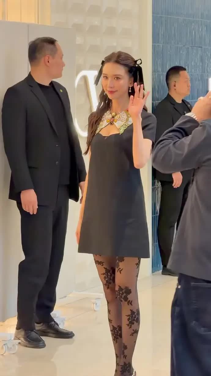 51岁的林志玲身着一件膝盖以上的短款黑色蝴蝶结连衣裙亮相,拥有一米七五的好身材,让她自带超模气质,微笑时表情自然,妥妥的冻龄女神!