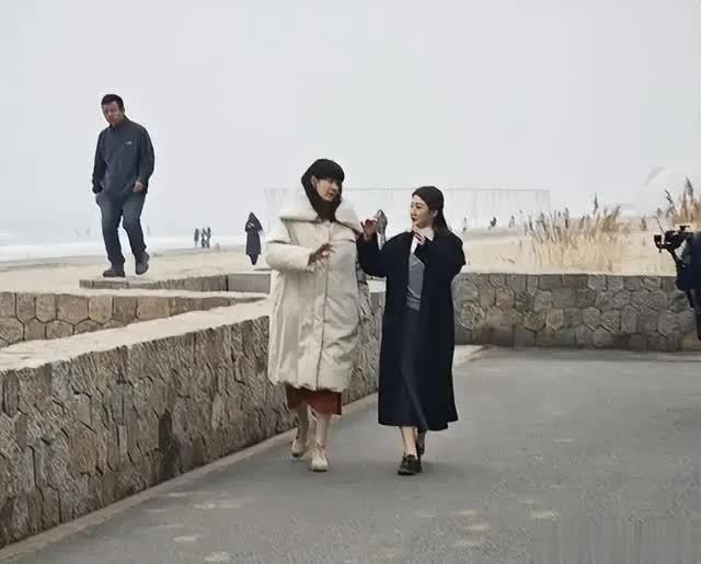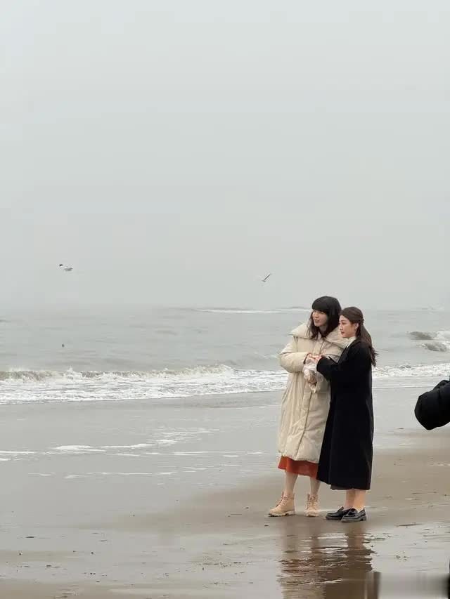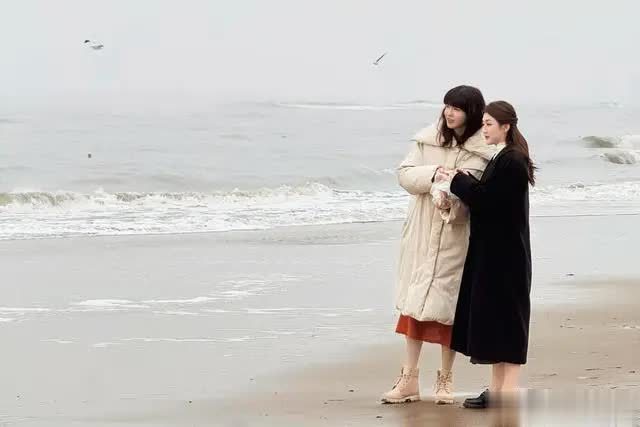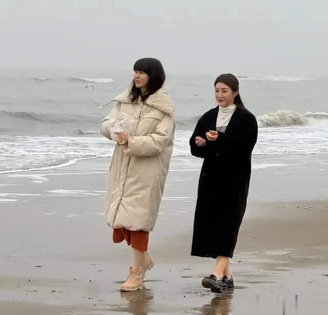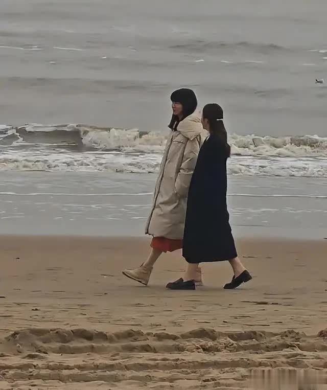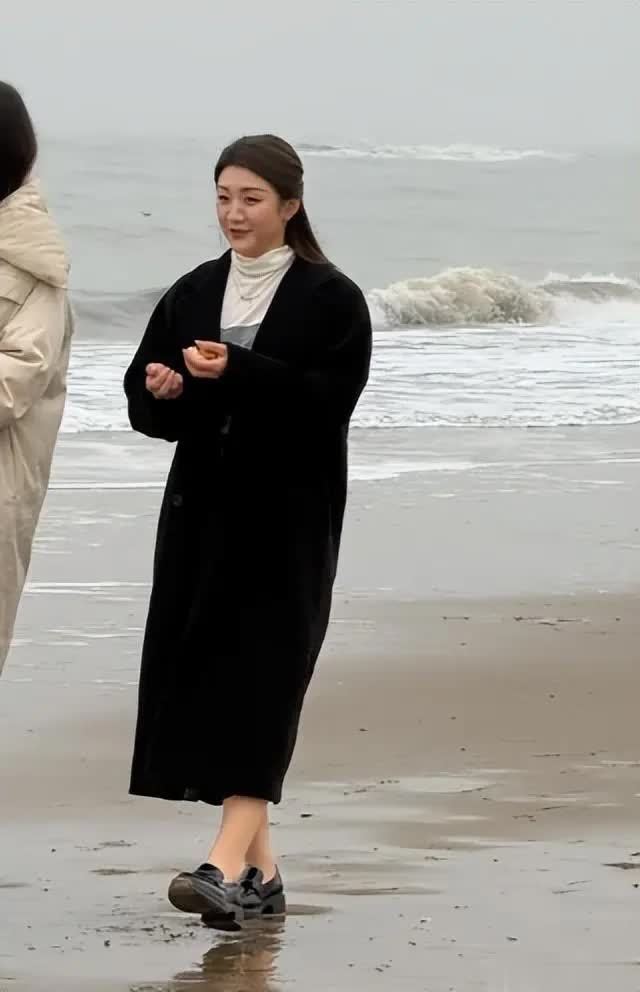 录制间隙,两人并肩在海边散步交流时,陈梦的状态依旧松弛,双手插在大衣口袋里,偶尔抬手拂去被风吹乱的发丝,笑容明媚。
